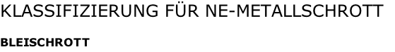 Weichbleischrott nur in Form von Kabelmänteln. Blechen, Rohren und Blöcken, Ofenrecht frei von Anhaftungen und anderen Bestandteilen. Auf vorhandene Ausläufe ist hinzuweisen.